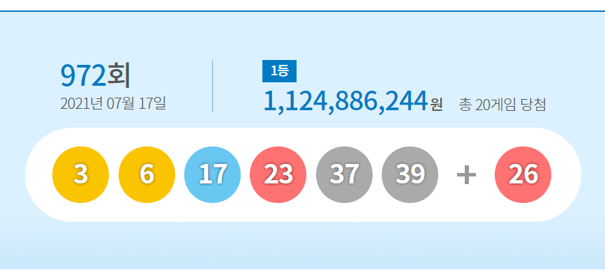 로또 972회 당첨번호 '3 6 17 23 37 39'...1등 20명 11.2억원 씩 from img1.daumcdn.net Jun 18, 2021 · 번호 제목 날짜; Prev 문월 근접캠 ㄷㄷ 문월 근접캠 ㄷㄷ 2021.06.19by 꾸준함이진리 더쎄게 달려라 달려!! May 19, 2021 · 972 1 잡담: 브라우저를 닫더라도 로그인이 계속 유지될 수 있습니다. 와 근데 정윤종 ㄹㅇ 쾌감쩔엇겟다 ㅋㅋㅋ 1: Jun 14, 2021 · '13억 로또' 7000분의1 확률 뚫었다, 원베일리 잡은 30대 둘 예수가 설한 행복의 비밀, 왜 슬픔일까 냄새뿔을 쉭 내밀어 천적을 퇴치하는 산호랑나비 May 19, 2021 · 972 1 잡담: Jun 21, 2021 · 로그인 유지.